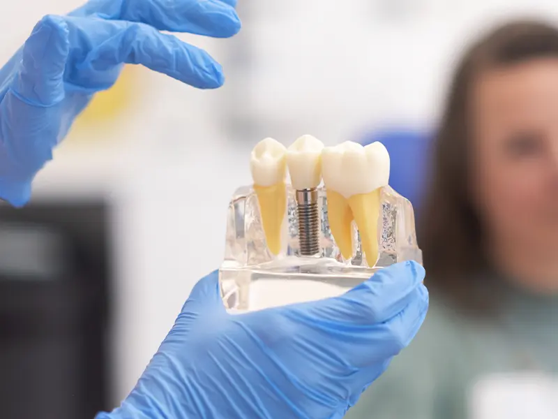 It is essentially an artificial root that is implanted into the jawbone. After the Implant is placed, it is left undisturbed until the bone heals around it, a process called osseointegration. Once this occurs, a crown is then place on top of it to replace the missing tooth.