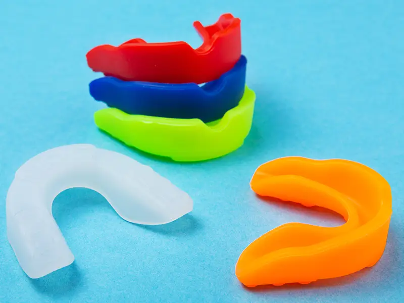 The thickness of the mouthguard varies according to the type of sport played and age of the patient. They come in a large range of colours and patterns and have the ability to have your name and phone number imprinted in the mouthguard.